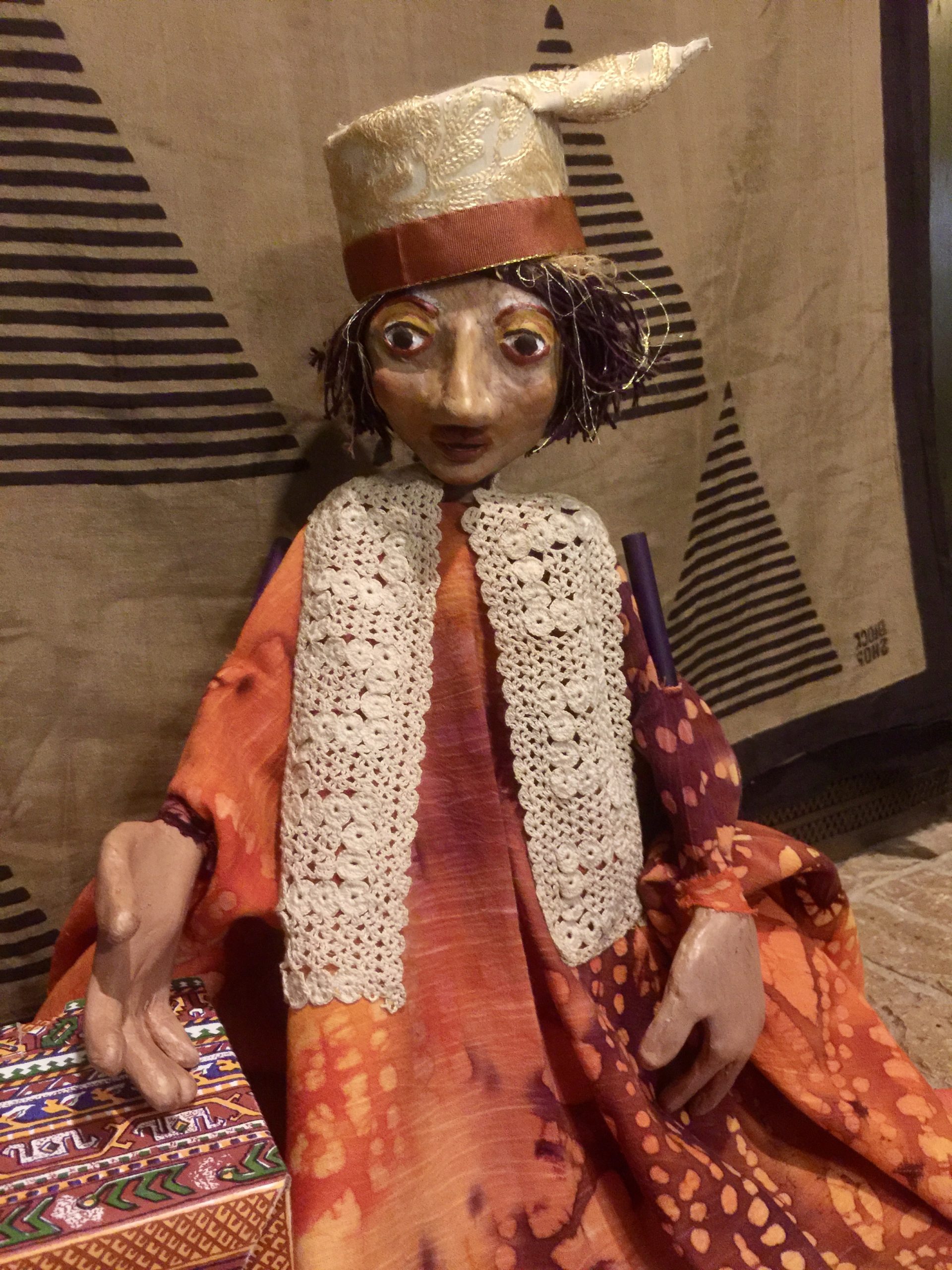 A new puppet! Melissodes lives in the same pocket universe as Osmia Elder (the elder white-haired puppet). He is a mystic and mathematician with a special interest in the fractal structures of pollen grains and is a friend to all longhorn bees. Currently, he is working on performing in a short puppet act that features his interaction with a Monarch butterfly.