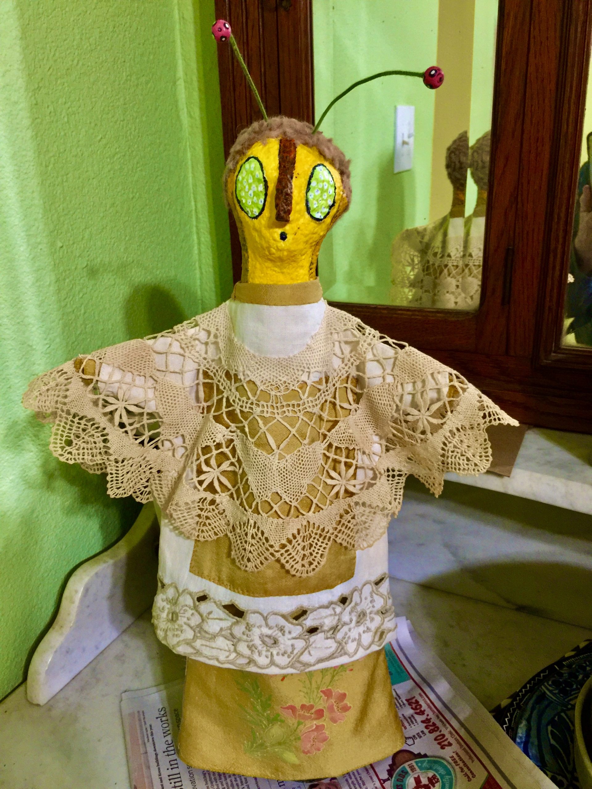 Here she is completed! Nicippia represents the Eurema genus of butterflies, the yellow grass butterflies that I often see throughout the year here in San Antonio — often the first to appear in spring and still flitting about in the fall, even winter.
